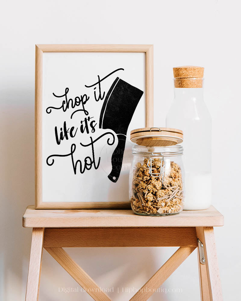 Chop it like it's hot with our hip hop-inspired wall art! Add a dash of humorous rap vibes to your kitchen with this funny sign. This instant download is a playful burst of puns and nostalgia, the perfect poster for elevating your home decor to the pinnacle of coolness. Allow the vibes of old school rap transform your space, turning it into a haven for fans of hip hop. Versatile and ideal for any room, this printable promises to infuse your entire home with the echoing beats of hip hop!
