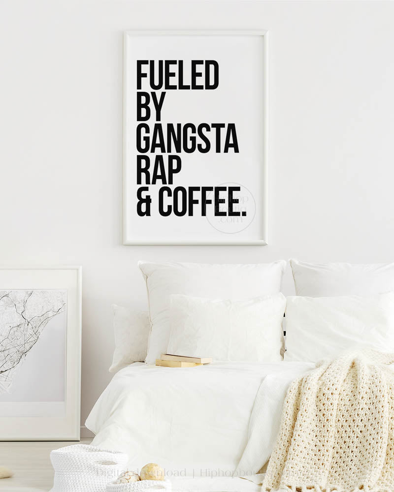 Transform your space with our humorous and inspirational text posters – not just stylish wall art, it's the perfect gift for that loved one who's fueled by gangsta rap and coffee! This hip hop-inspired sign blends motivation and sass, featuring minimalist typography that turns a simple phrase into a powerful statement. Add a touch of humor and motivation to any room, making our printable sign the perfect gift for someone special. More than just decor, it's a stylish reminder to stay inspired daily!