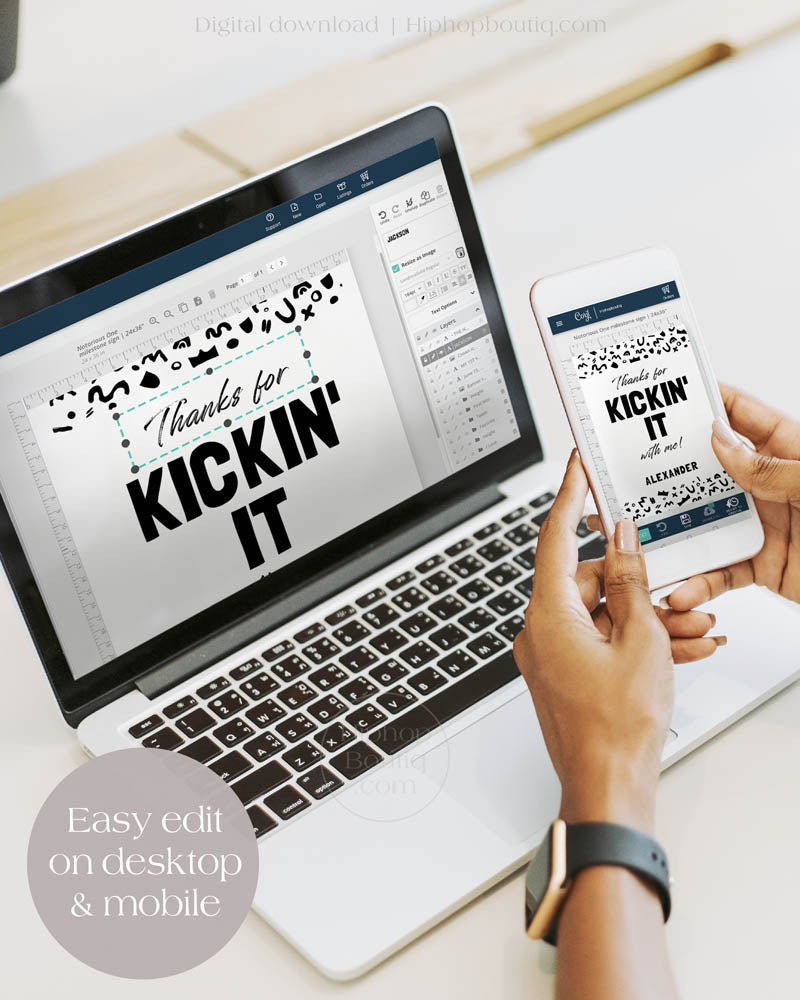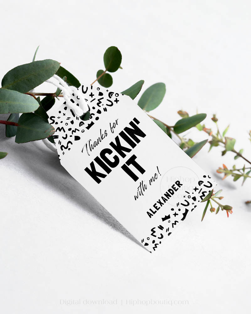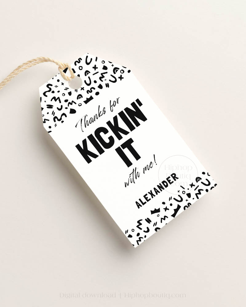 What better way to say Thanks for kickin' it than this hip hop themed party favor tag! Perfect for adding that little extra to your little one's birthday bash and expressing your gratitude in a fun way, while still keepin' it real. This editable template is easy to customize, download and print.