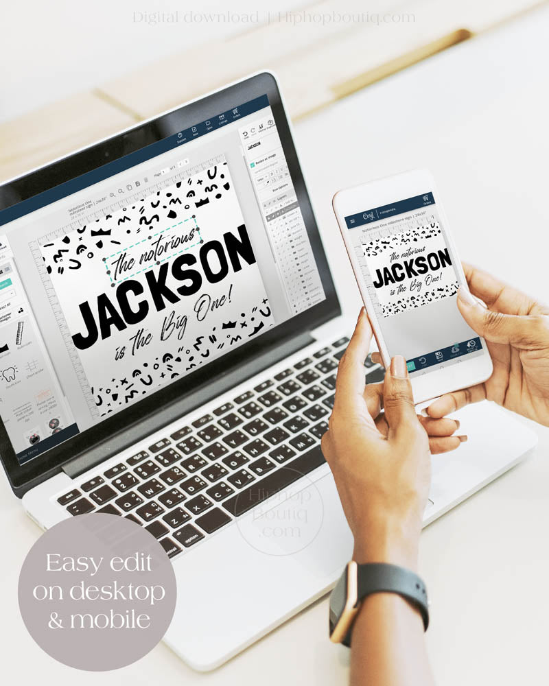 Welcome your guests to a Notorious 1st birthday with this editable hip-hop backdrop! Put the banner on display at your little one's first birthday party and hold onto as a lovely keepsake to look back on when they're older. This hip hop themed backdrop template is easy to customize, download and print.