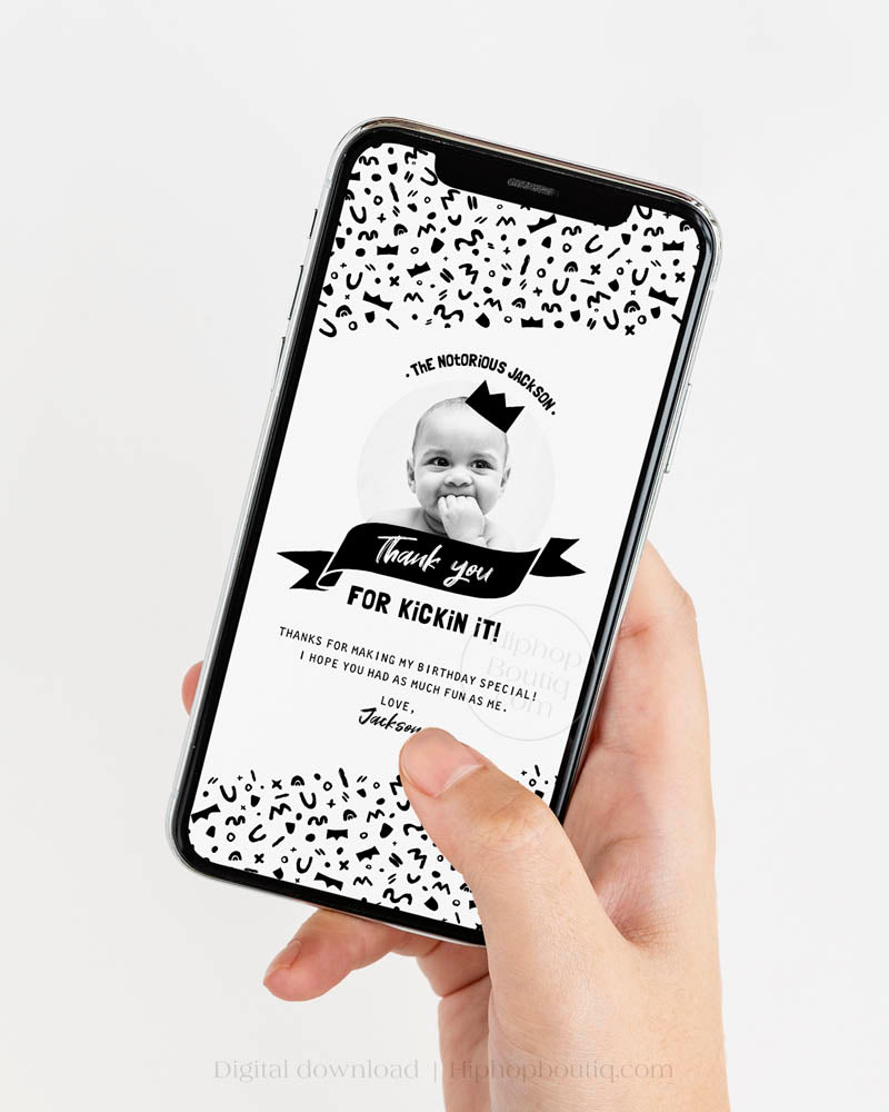 Thank your party guests for kicking it with this editable hip hop thank you card! This rap themed card allows you to add your personal shoutouts and thank you text. Holla at your homies by sending easily via text or mail!