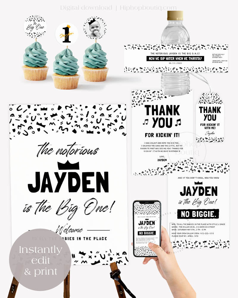 Celebrate your baby's first birthday with this editable birthday decor bundle! These hip-hop themed decorations are perfect for decorating your little one's 1st birthday party and holding onto as lovely keepsakes to look back on when they're older. This birthday bundle is easy to customize, download and print.