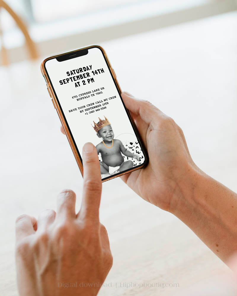 Is your little homie getting B.I.G? This Notorious One video invitation will help you celebrate The Big One Birthday in style! Featuring a 90s hip hop theme, this animated invite is sure to get that old-school gangsta party started. Simply personalize with your party details and get those RSVPs rolling in with this one-of-a-kind 1st birthday invitation!
