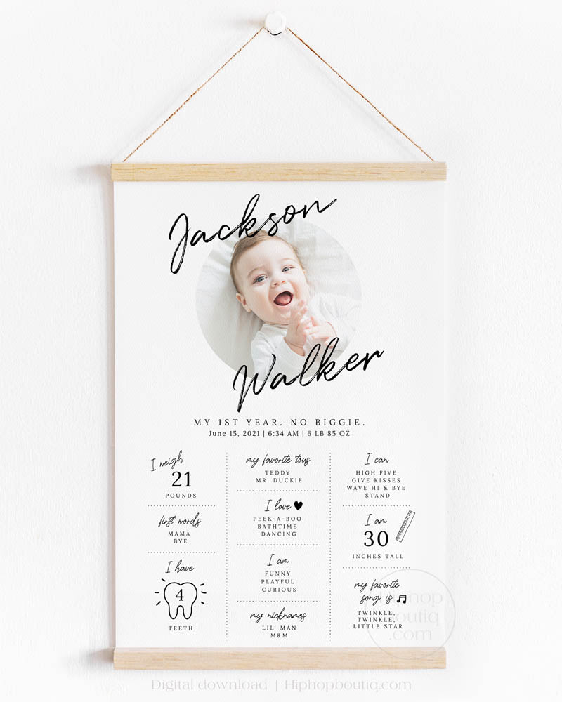 Celebrate your baby's first birthday with this editable milestone sign! Put it on display at your little one's 1st birthday party or hold onto as a lovely keepsake to look back on when they're older. This milestone board template is easy to customize, download and print within minutes.