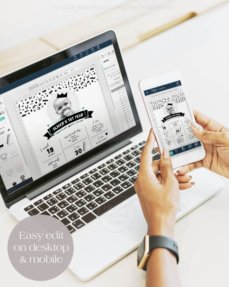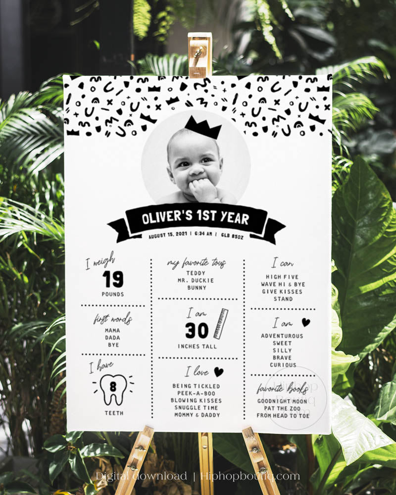 Celebrate your baby's 1st birthday with this editable milestone sign! Put it on display at your little one's first birthday party or hold onto as a lovely keepsake to look back on when they're older. This milestone board template is easy to customize, download and print within minutes.