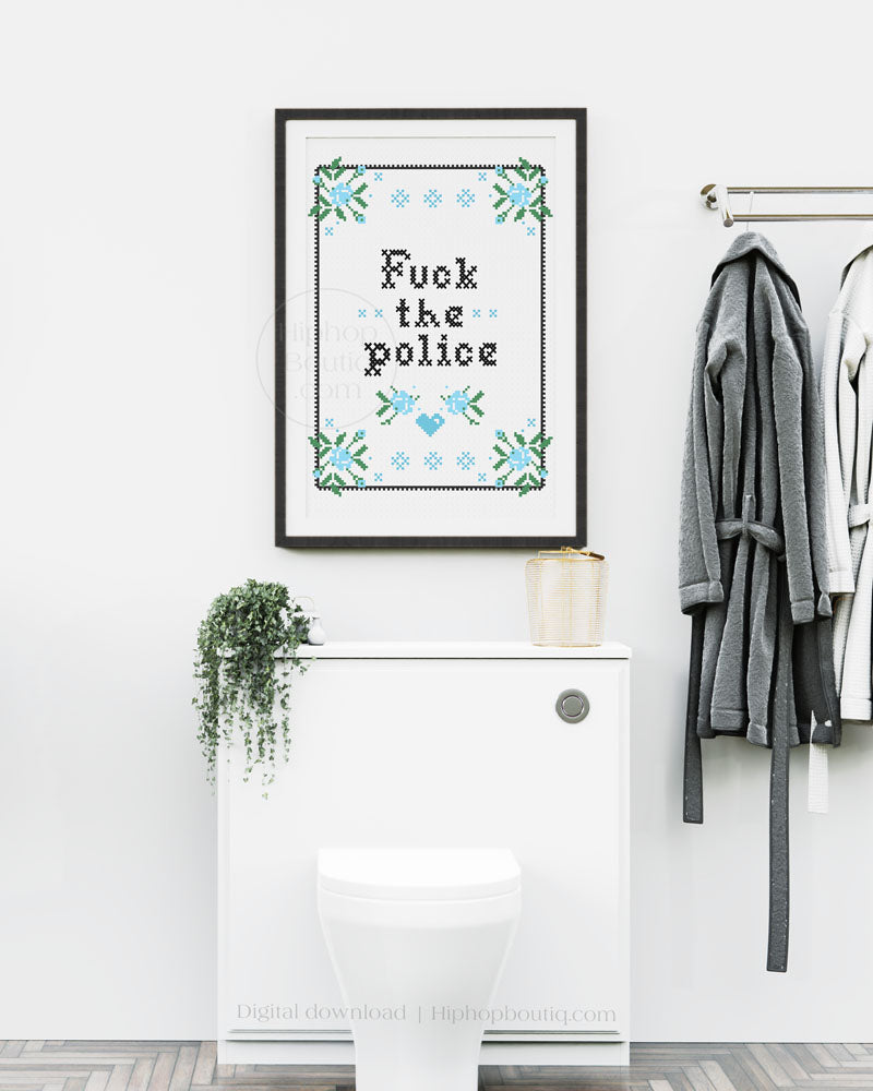 This funny rap cross stitch is a must-have decor for any hip hop themed bathroom! Make your friends laugh by adding a touch of gangsta to your bathroom walls – guaranteed fun for any guest.